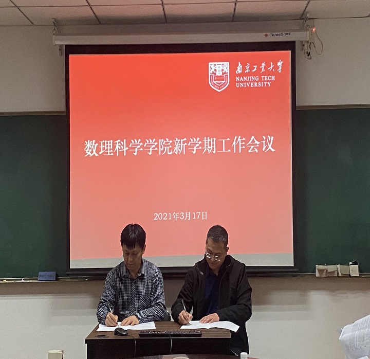 根据学校第六轮干部聘任结果,数理学院为更好的为广大师生服务,经院党政联席会研究,决定对领导班子成员分工进行调整,董晓臣院长宣读学院新一届党政班子分工情况。学院新领导班子与大家见面,表示坚决服从组织安排,做好本职工作。新领导班子成员依次发言,传达职能部门新学期工作会议精神,布置相关条块工作。 董晓臣院长对新一届领导班子的工作提出要求,希望大家站在新的发展起点上,确保“十四五”开好局起好步,全院上下更要发扬“三牛精神”,接续奋斗、砥砺前行。全面从严治党和安全工作一直都是学院工作的重点工作,为层层落实相关工作,大会现场全体参会人员签订“全面从严治党暨领导干部“一岗双责”责任书”、“安全工作责任书”,将具体工作落到实处。