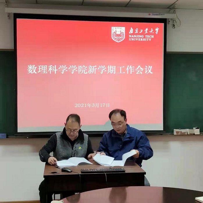 阅读次数: 发布时间:2021-03-18 更新时间:2021-03-18为进一步统一思想,认真贯彻落实学校发展的总体目标和工作要求。数理科学学院3月17日,在笃行楼102会议室召开新学期工作会议。学院领导班子、党支部书记、两办负责人、系主任、实验中心负责人参加会议,会议由学院党委书记王超主持。