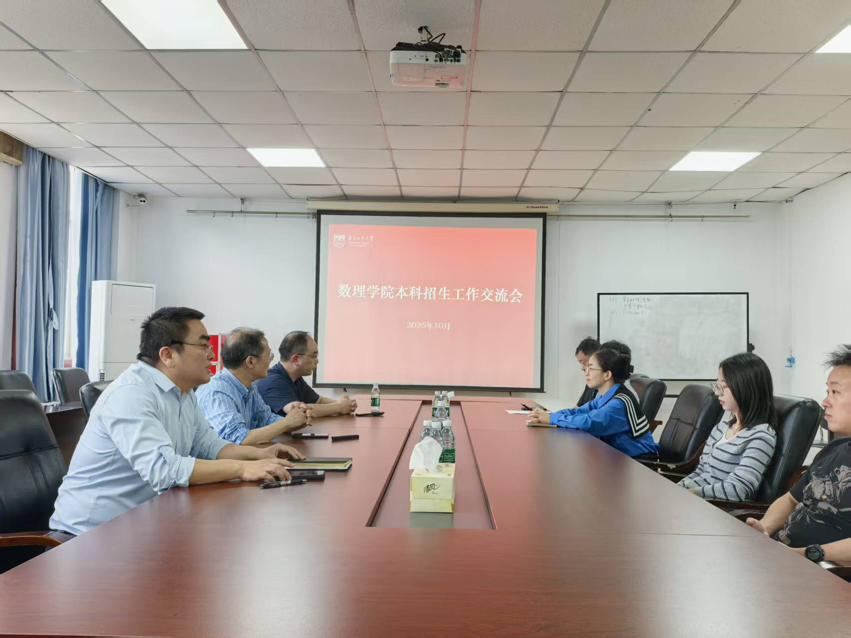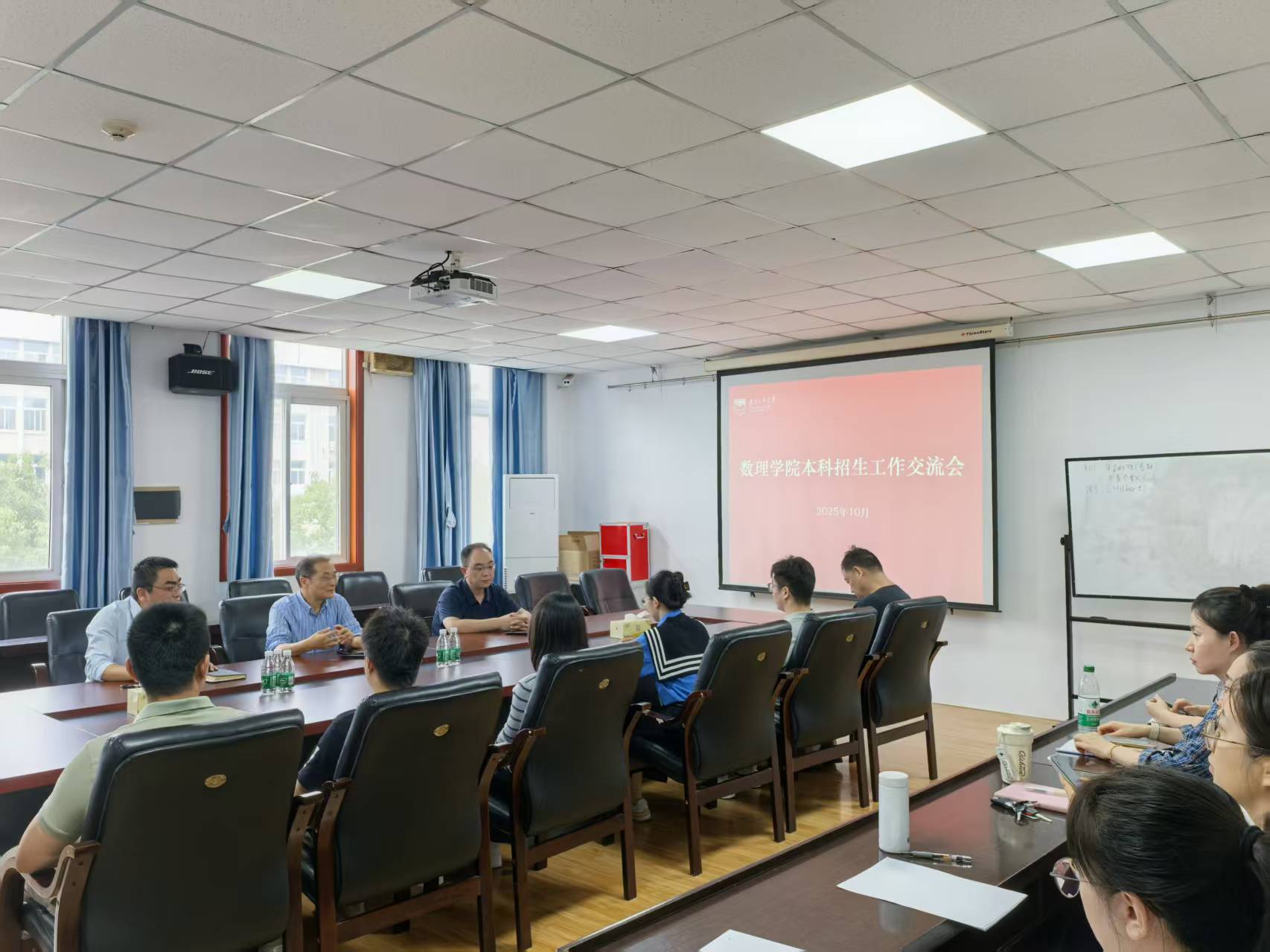 阅读次数: 发布时间:2025-10-19 更新时间:2025-10-19近日,数理科学学院邀请艺术设计学院原党委书记陈建华来院作本科招生工作专题交流讲座。学院党委副书记蔡亚峰、副院长吴高建,数学系、物理系、力学系多年参加招生宣传的骨干教师,以及学院两办全体老师参加本次交流会。