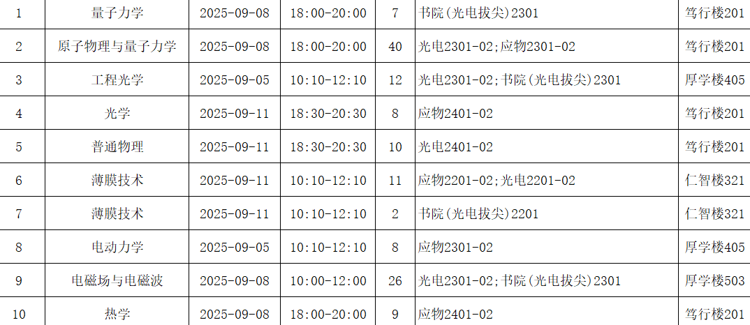 2025年秋季学期补(缓)考学院自排考试安排--物理系