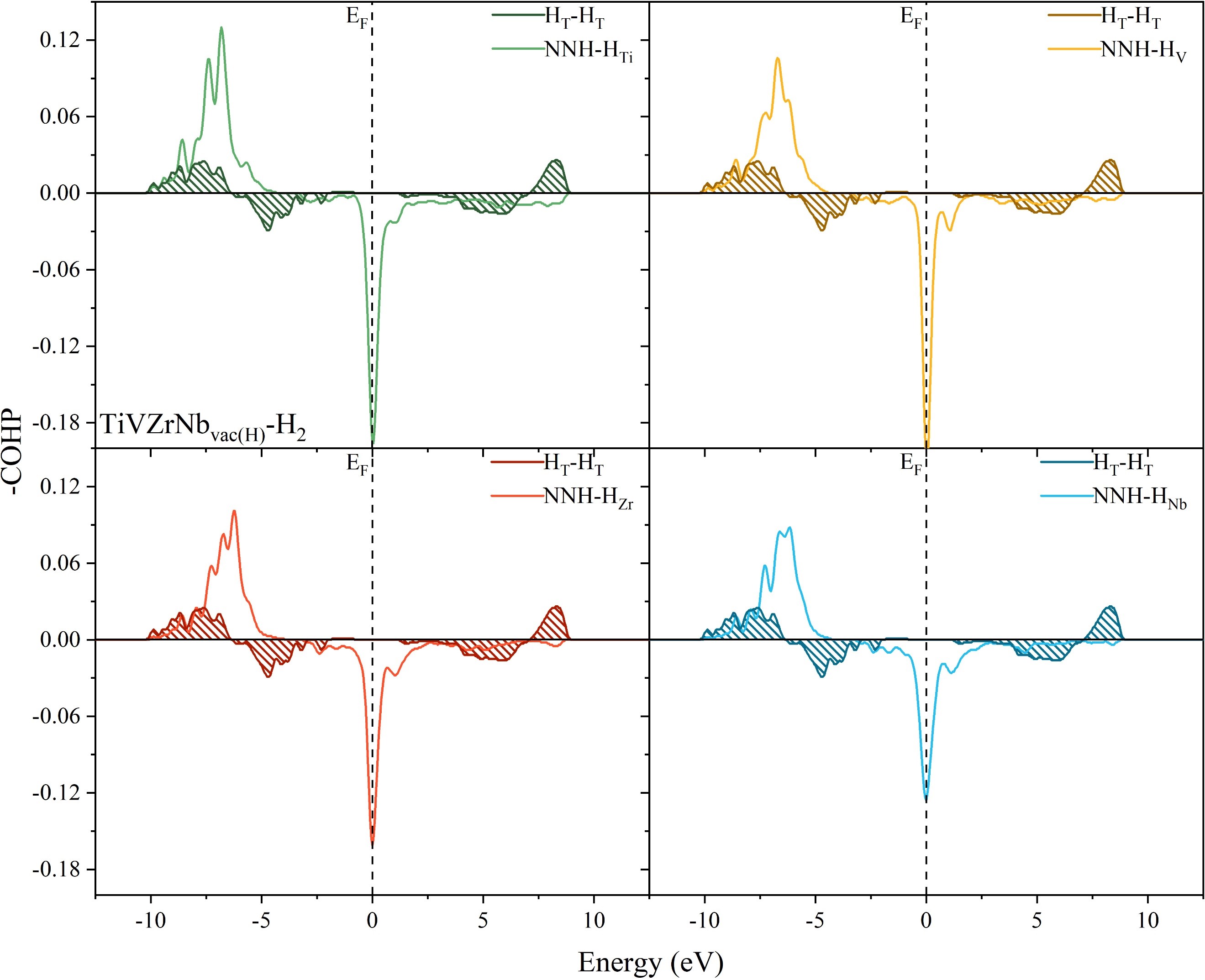 阅读次数: 发布时间:2025-08-29 更新时间:2025-08-29在合金的吸放氢过程中,空位的产生不可避免。然而,空位对合金储氢性能的影响,目前尚未明确。我们的研究结果表明,在Ti0.25V0.25Zr0.25Nb0.25氢化物中,空位的存在会对氢原子的间隙占据产生显著影响。氢原子优先占据空位周围的四面体间隙,其次才是常规的四面体间隙。此外,通过解吸焓计算发现,合金中不同类型的空位会对合金氢化物的热稳定性产生影响。为了进一步探究氢原子能否稳定占据空位,我们将氢原子初始放置于Ti0.25V0.25Zr0.25Nb0.25二氢化物的空位处。结构优化后发现,氢原子占据空位呈现出正的形成能。这从能量角度表明,氢原子占据空位的状态并不稳定。通过化学键分析可知,这种不稳定主要与氢-氢之间的反键相互作用有关。 这一发现为设计储氢合金材料提供了原子级别的认识,并为中熵合金和高熵合金中的储氢机制提供了更广泛的理解。