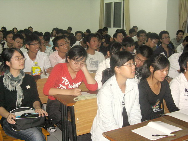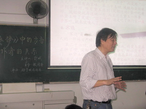可这些南京话到底与作者有什么关系呢?正当听众们疑惑不解的时候,俞教授就解说到,作者肯定在南京有一定的生活经历。最后,他谈到《红楼梦》具有很高的思想价值和非凡的艺术成就。俞老师幽默诙谐的语言、精辟独到的论述让同学们听得津津有味。全场观众在教室里