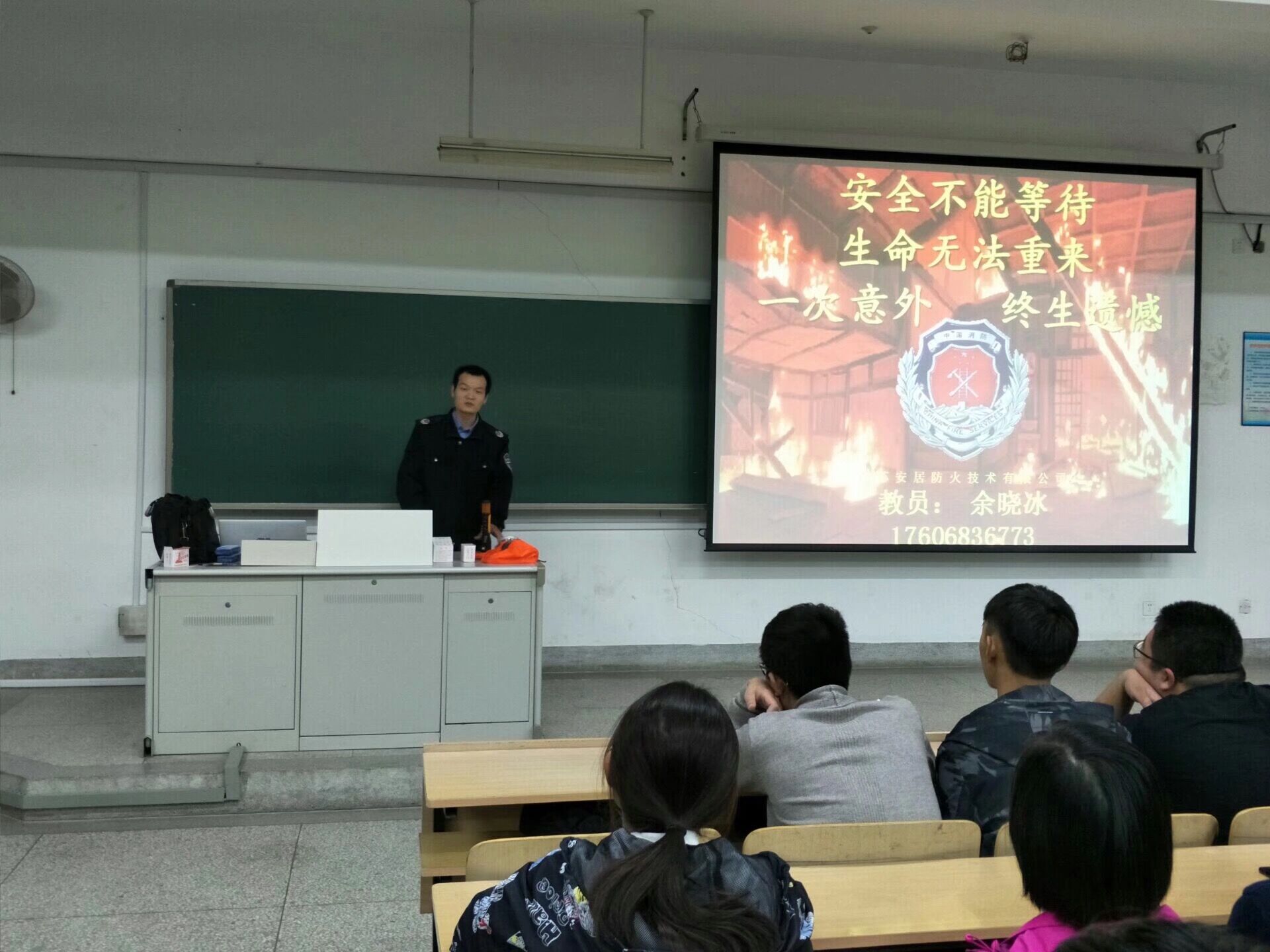 讲座一开始,余晓冰教员便向同学们列举典型的火灾案例,并播放了几个火灾视频。通过分析火灾成因,摆出具体的伤亡数据让同学们意识到火灾的严重危害性,他指出尽管同学们已经迈进大学校门,步入成年阶段,但防范意识依然薄弱,应急技能仍有待提升。为此主讲教员现场教授同学们遇到火灾时的几个自救小方法,并演示如何正确佩戴防烟面具,如何正确使用灭火器。生动的讲解让在场同学收获良多。最后,余晓冰教员强调,大学校园人群密集,是火灾易发地点之一,告诫同学们在宿舍生活中一定要做到人走电断以防危险,这既是对自己的负责,也是对他人的负责。