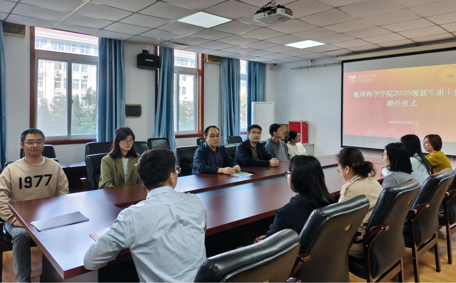 阅读次数: 发布时间:2025-10-29 更新时间:2025-10-2910月29日中午,数理科学学院在笃行楼318会议室举行2025级新生班主任聘任仪式,参加聘任仪式的有各位新生班主任、新生辅导员,聘任仪式由学院党委副书记蔡亚峰主持。