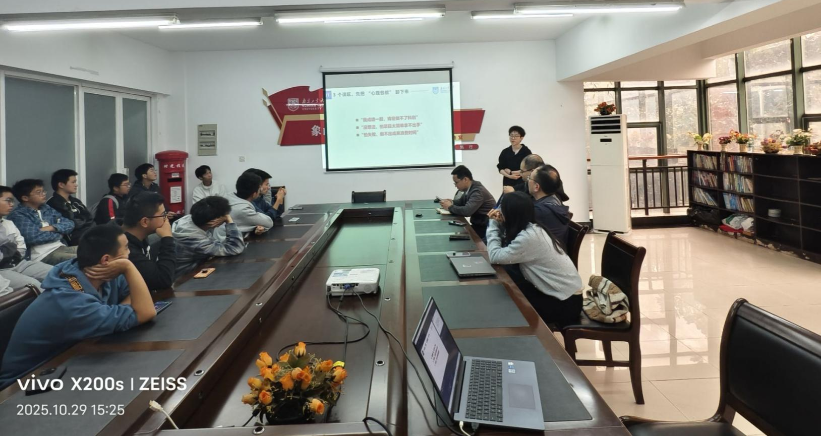 阅读次数: 发布时间:2025-10-30 更新时间:2025-10-30为激发新生科创热情、助力综合能力提升,10 月 29 日下午,数理科学学院在象山 “一站式” 学生社区举办新生科创分享会。城建学院王瑜教授、力学系陈岩老师、优秀学子代表、新生辅导员杨德旭老师及2025级新生代表参加分享会,由学院党委副书记蔡亚峰主持。