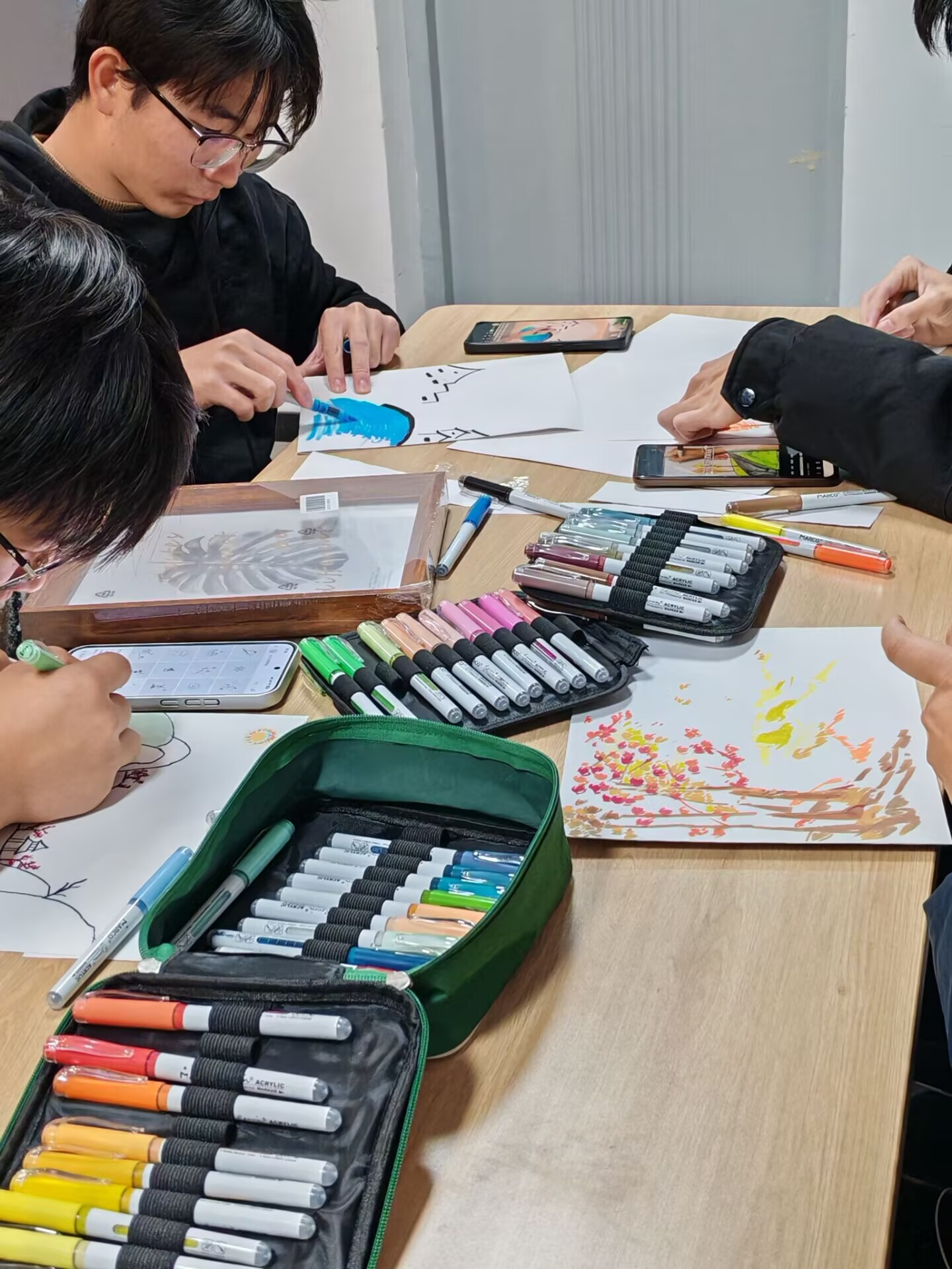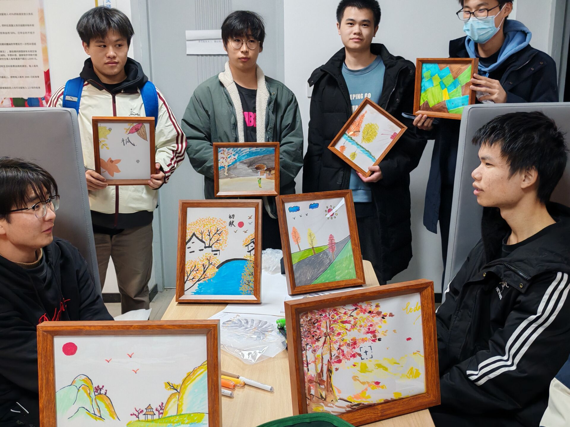 活动现场,同学们用绘画的彩笔勾勒唯美的画面,从调色、构图到落笔,全神贯注地进行艺术创作。当画作完成后,活动进入了最具仪式感的环节——装裱。同学们亲手为自己的作品完成装裱。当画作被郑重地嵌入画框,瞬间被赋予了一种庄严感与完成度,这不仅是对创作成果的加冕,更让艺术之美以最完整的形式呈现在大家面前,成为可以长久珍藏的社区记忆。